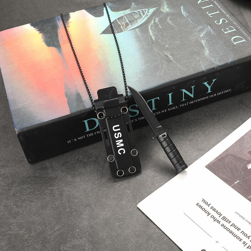 Portable Necklace Survive Opener EDC Pocket Self Blade Fruit Knife Camp Outdoor Hunt Defense Black Hike