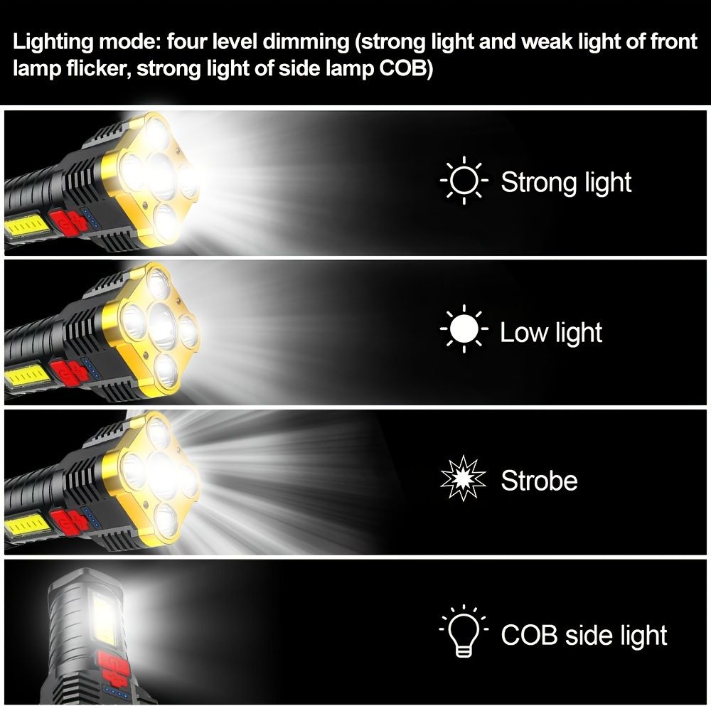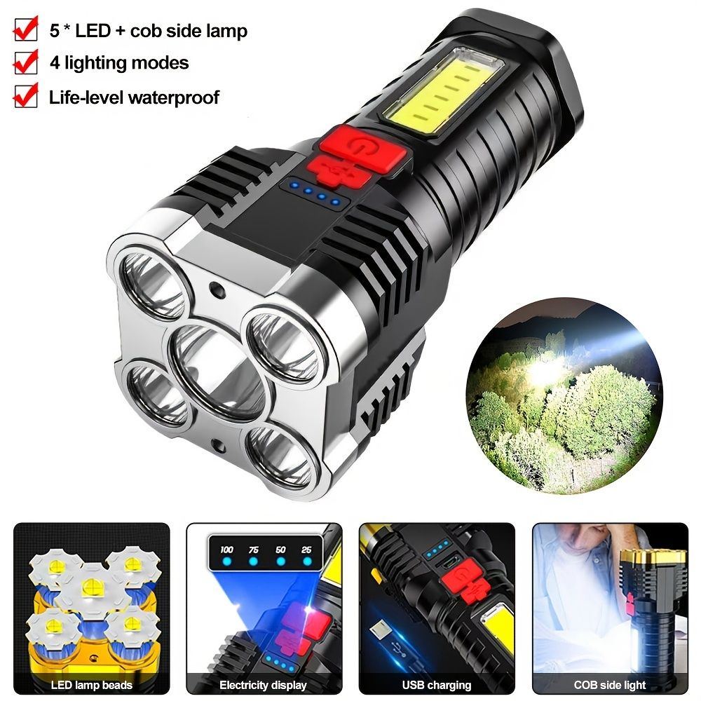5 LED Flashlight; USB Rechargeable Strong Light With COB Side Searchlight For Outdoor Travel Emergency 5 LED Flashlight; USB Rechargeable Strong Light With COB Side Searchlight For Outdoor Travel Emergency 5 LED Flashlight; USB Rechargeable Strong Light With COB Side Searchlight For Outdoor Travel Emergency